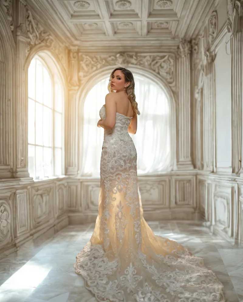 Thirty-seven pieces, hand-constructed over twelve thousand atelier hours in the Beirut workshop. A meditation on stillness — silk tulle from Lyon, French lace from Calais-Caudry, heirloom embroidery reserved for Maison Rima since 2012.