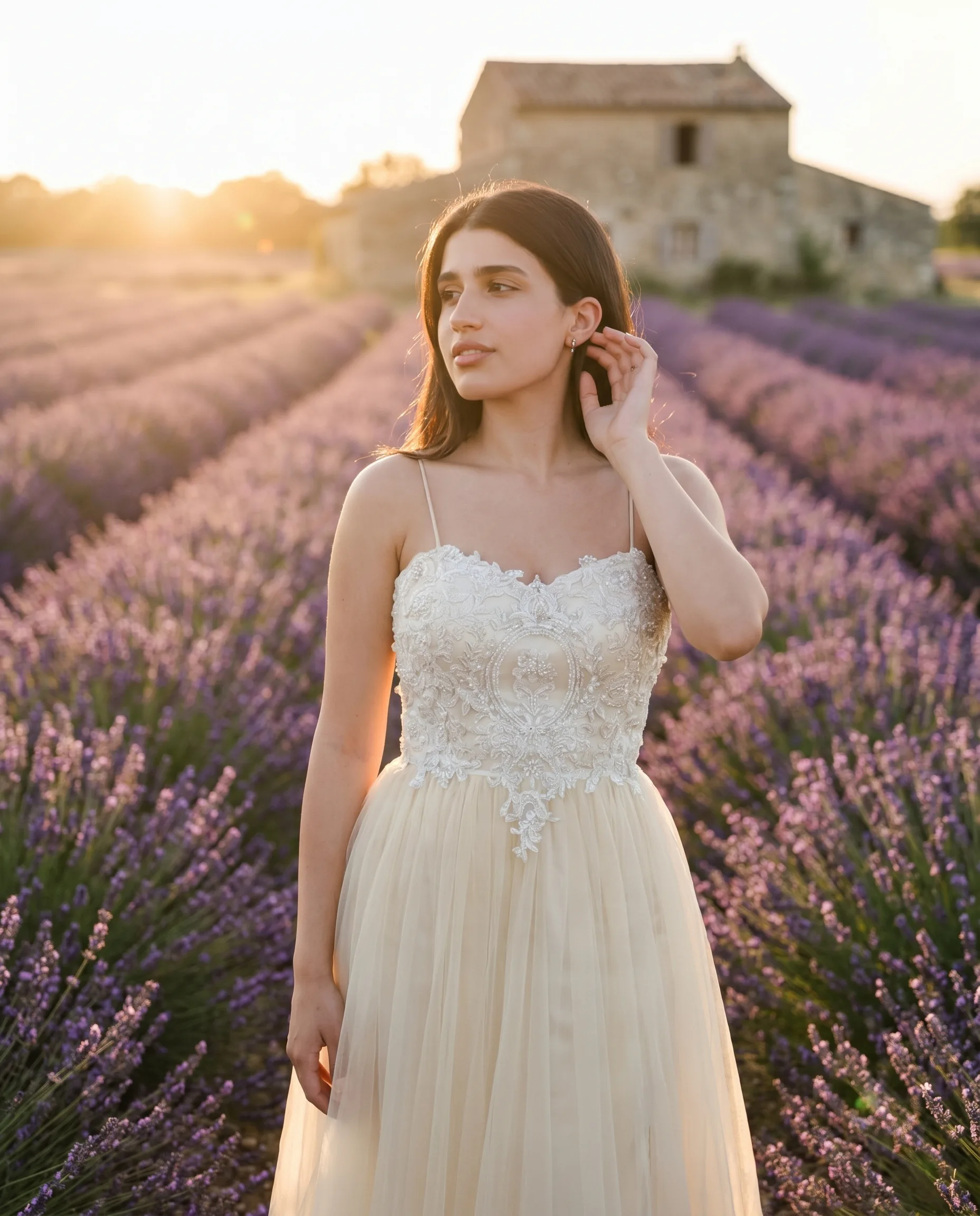 Thirty-seven pieces, hand-constructed over twelve thousand atelier hours in the Beirut workshop. A meditation on stillness — silk tulle from Lyon, French lace from Calais-Caudry, heirloom embroidery reserved for Maison Rima since 2012.