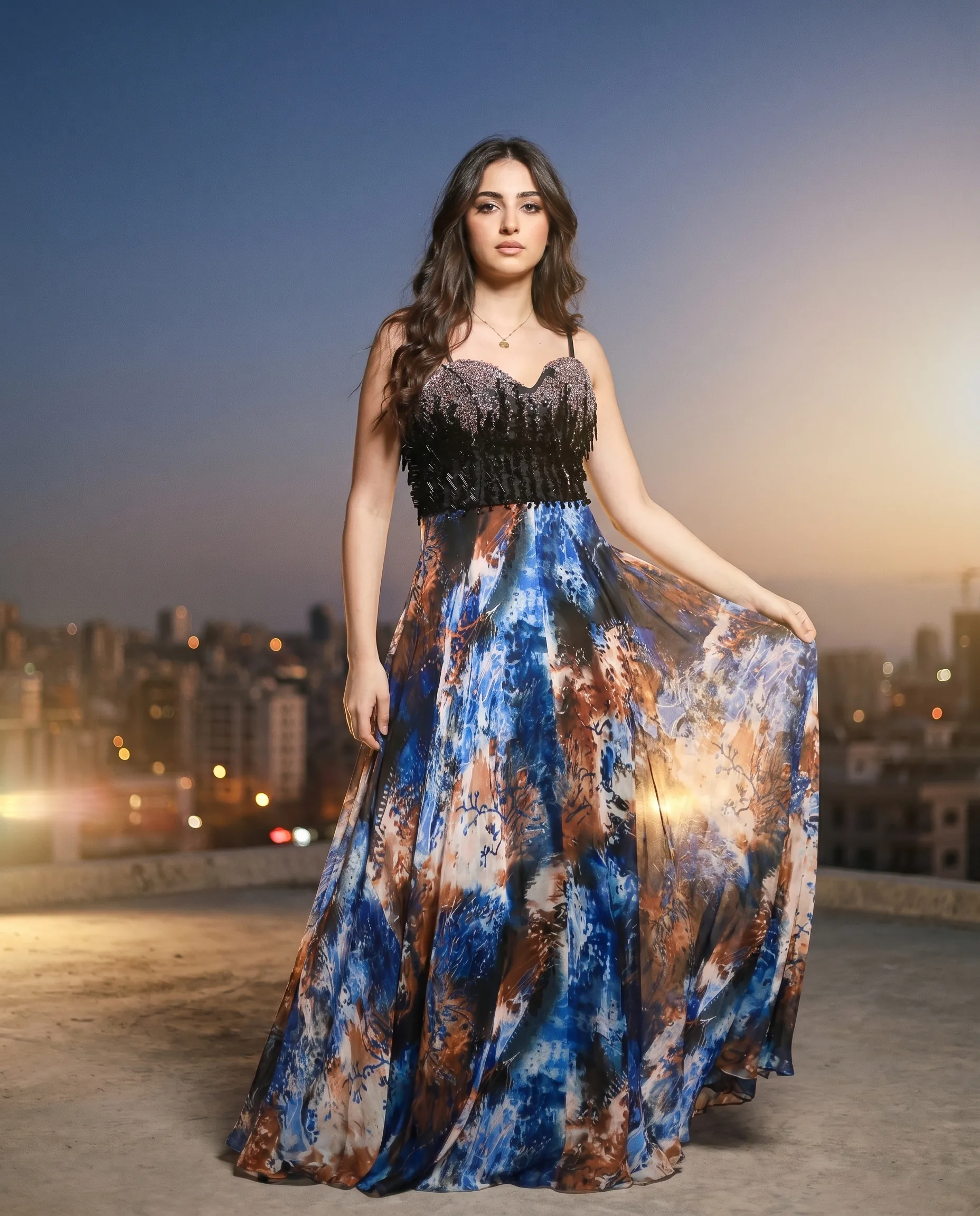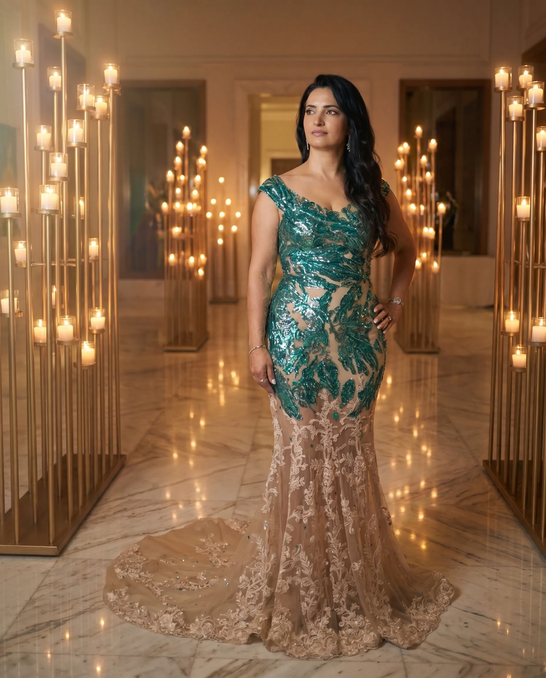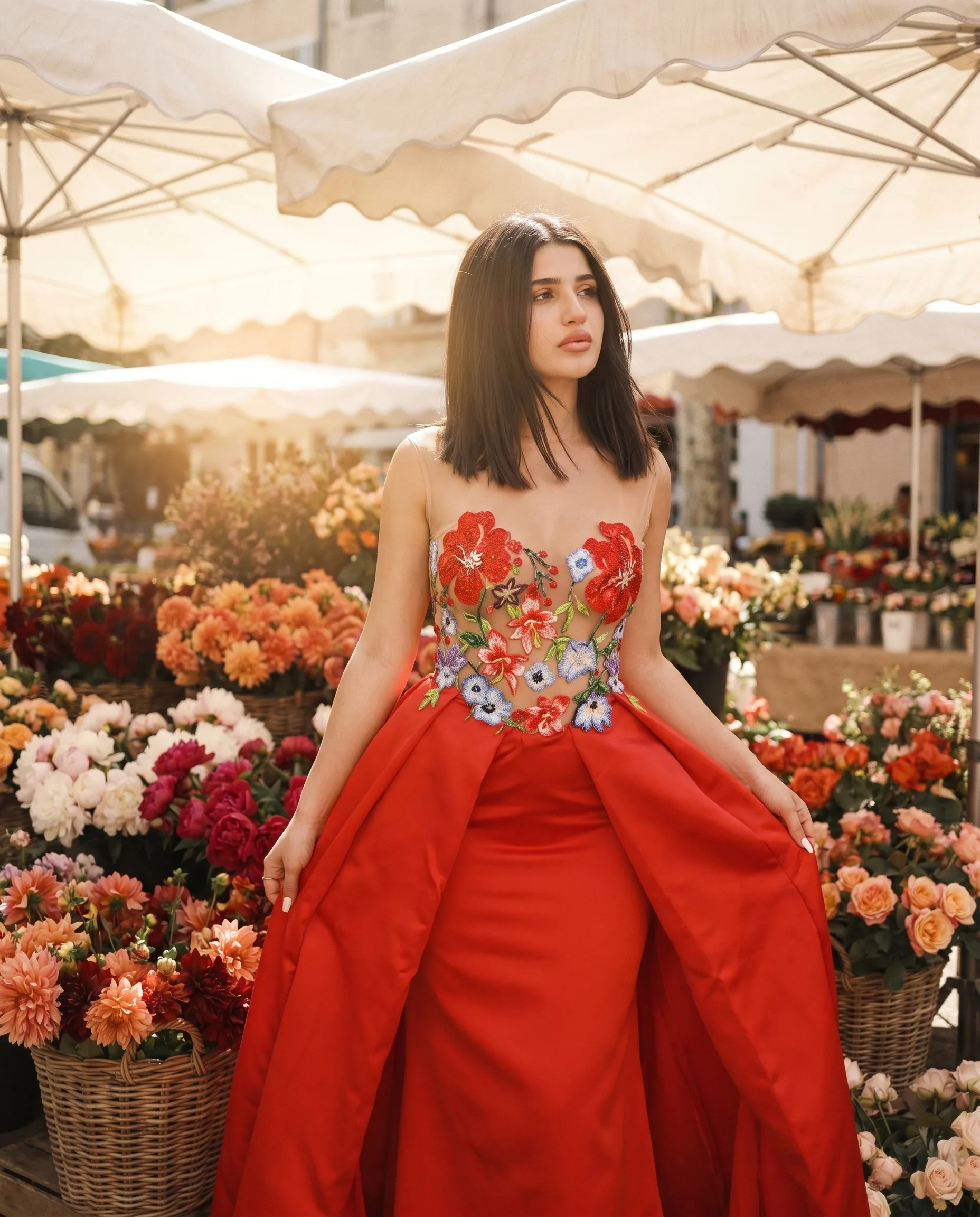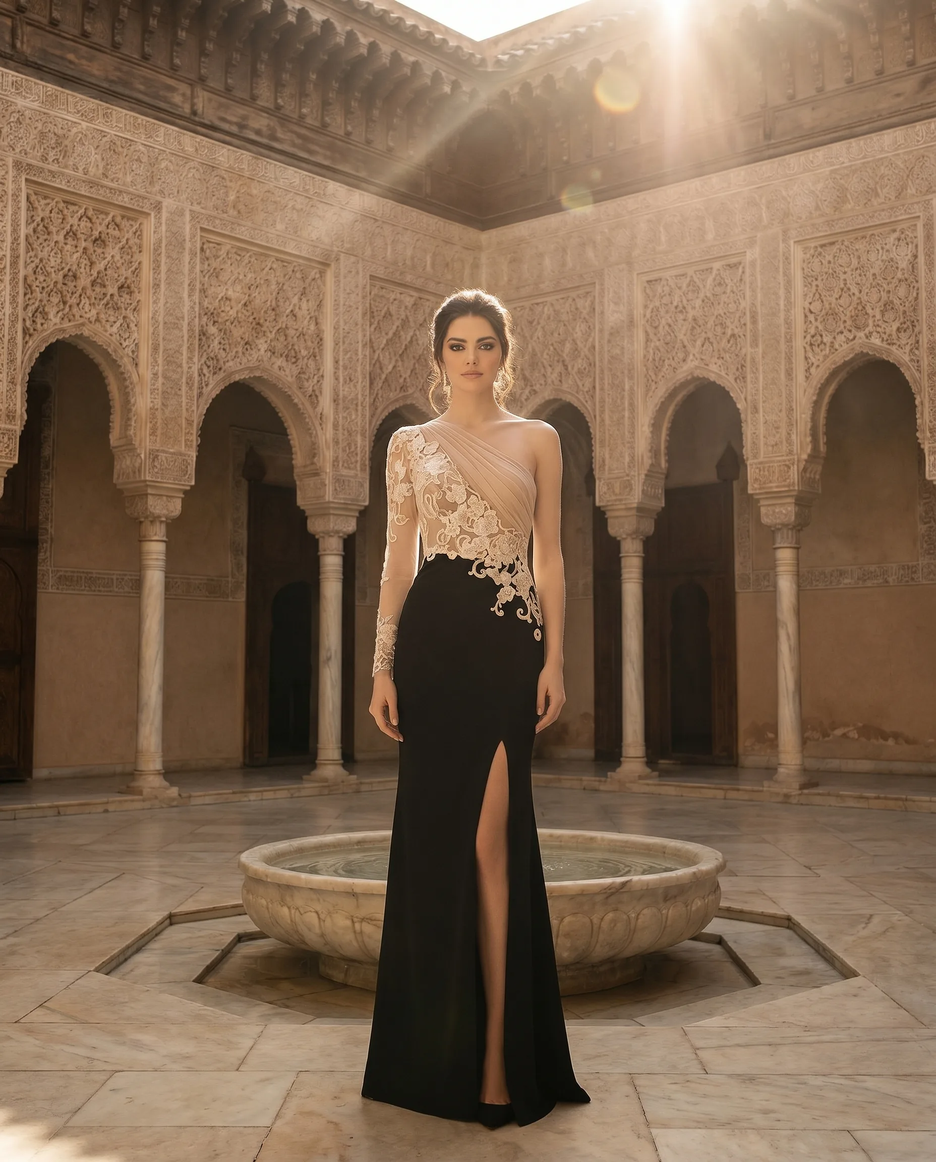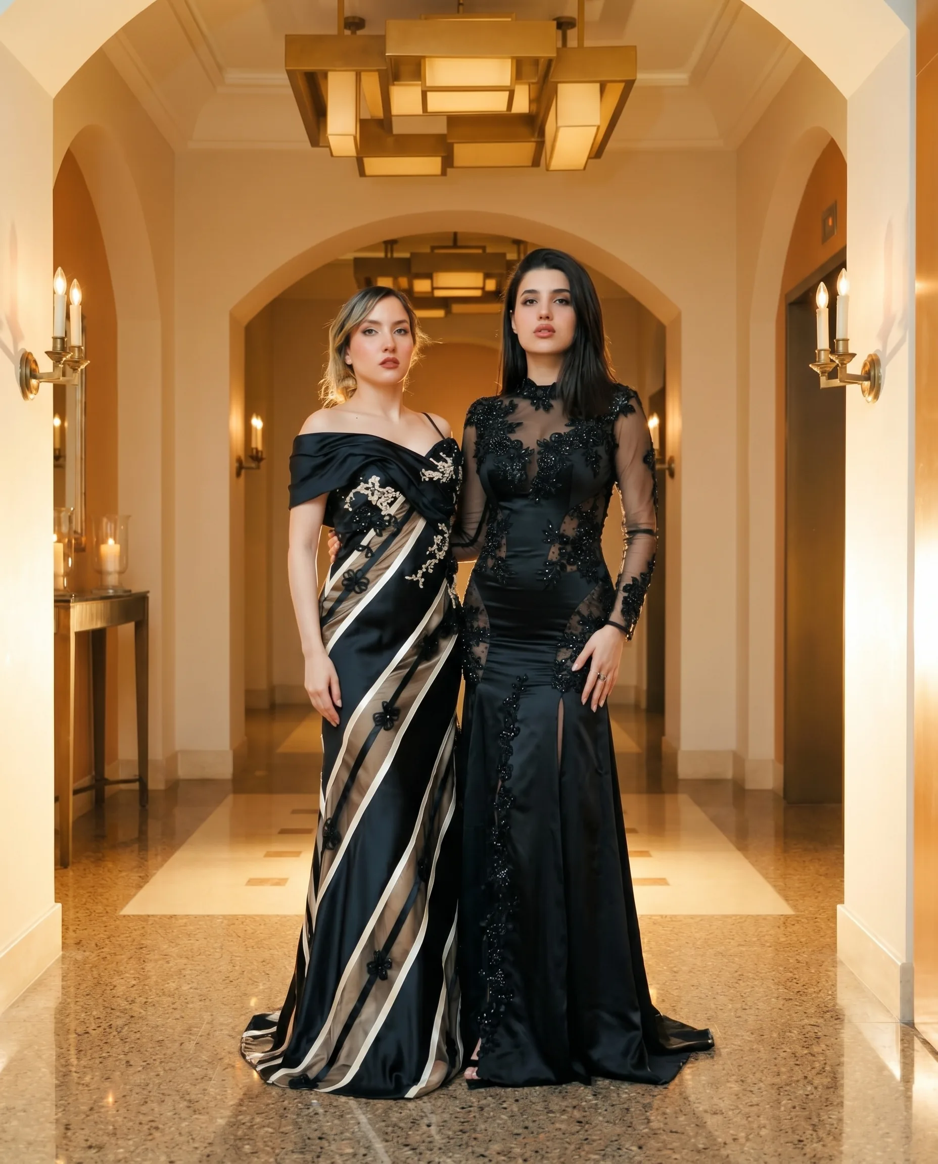 Every dress in the FW26 collection is patterned, cut, sewn and hand-finished in the Tripoli atelier — by Rima Malaeb herself and a small team of seamstresses. None of it is outsourced.